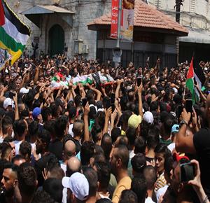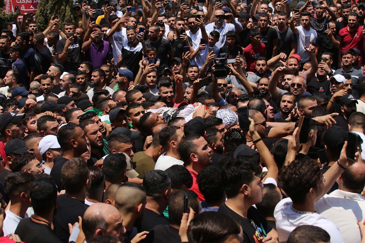 نابلس - عشرات الآلاف يشيعون جثامين شهداء نابلس الثلاثة في موكب جنائزي مهيب