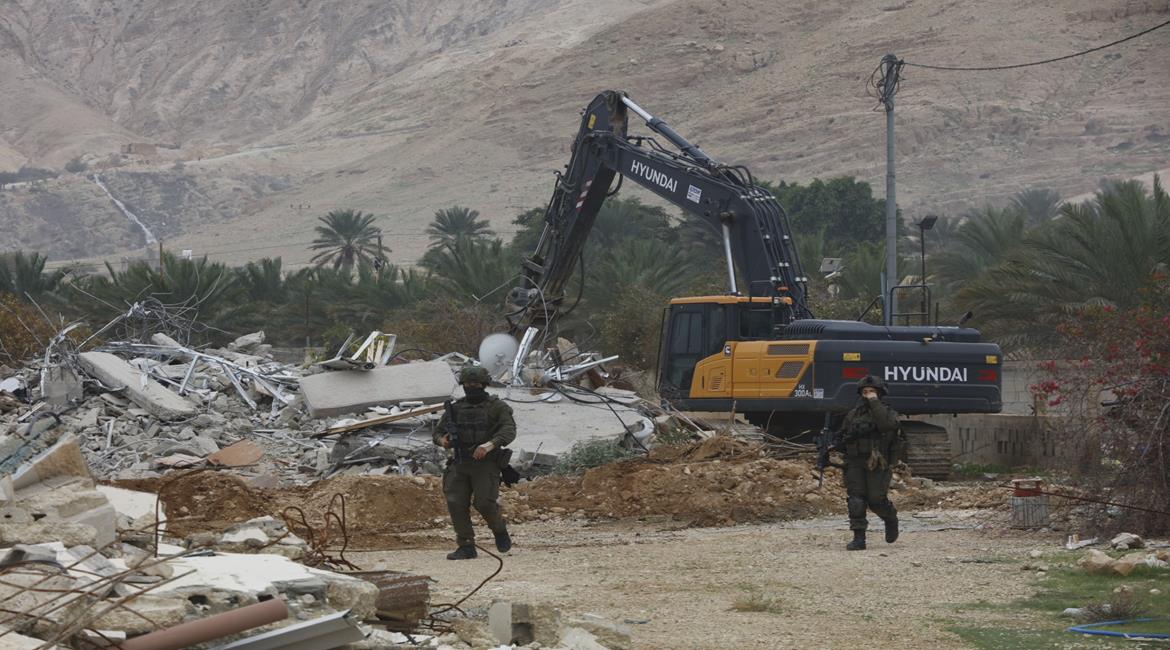 قوات الاحتلال الاسرائيلي تهدم منزلاً وبركساً في قرية الديوك التحتا غرب اريحا