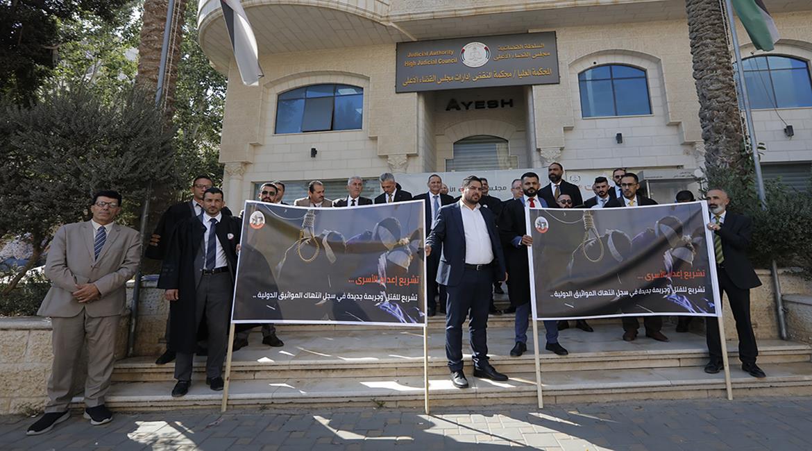 نقابة المحامين تنظم وقفة احتجاجية رافضة لمشروع قانون إعدام الاسرى الفلسطينيين