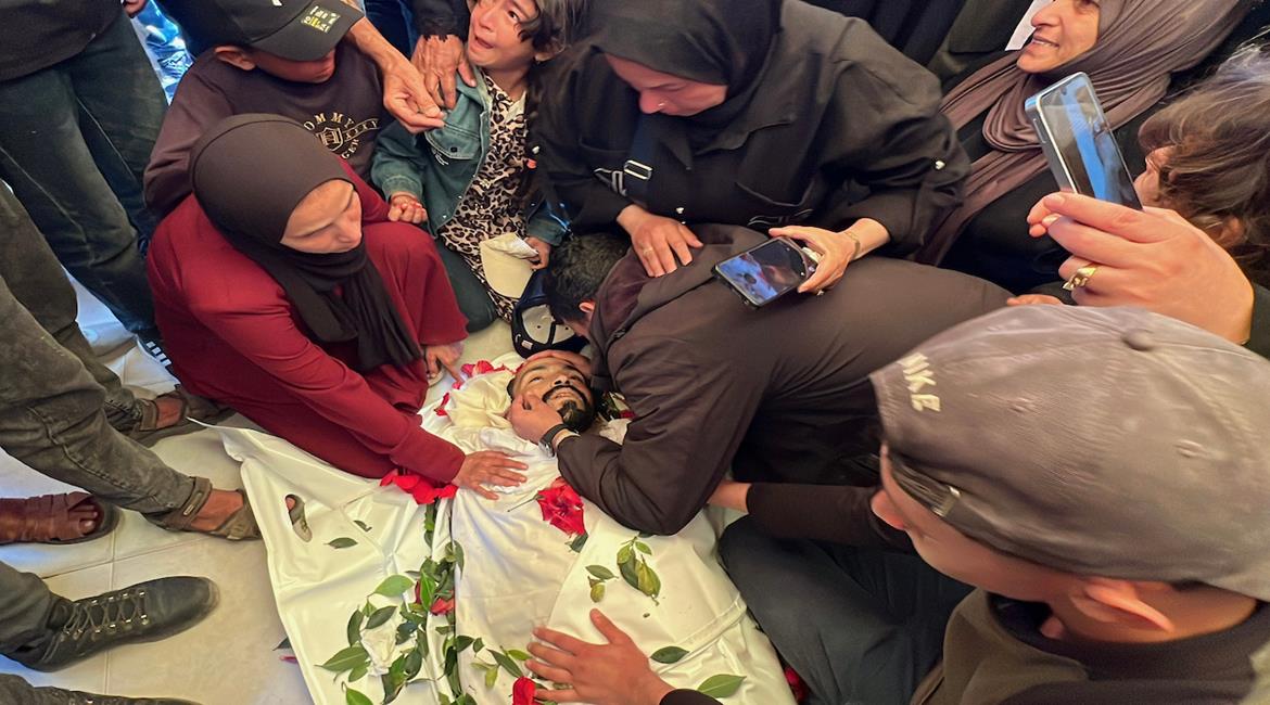 وداع وتشييع الشهيد أمجد الجرف في مجمع ناصر الطبي، ارتقى بنيران الاحتلال شرق مدينة خان يونس جنوب قطاع غزة