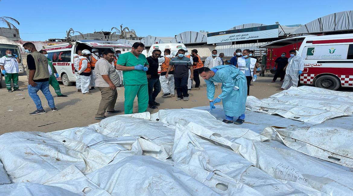 الصليب الأحمر ينقل جثامين شهداء كان يحتجزها الاحتلال الإسرائيلي إلى مستشفى ناصر في خان يونس جنوب غزة