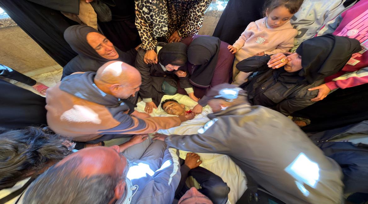 وداع وتشييع شهيدين في مجمع ناصر الطبي ارتقيا بقصف طائرات الاحتلال في منطقة بني سهيلا شرق خان يونس