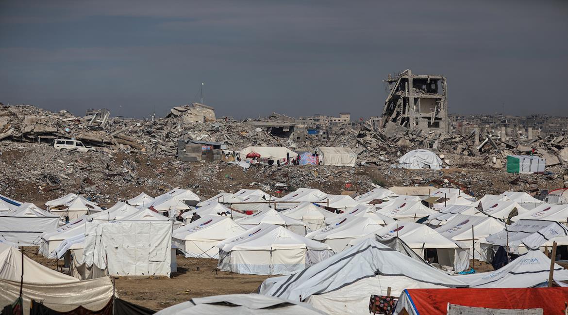 مشاهد لتكدس خيام النازحين وسط الدمار الواسع في حي الزيتون جنوب شرق مدينة غزة
