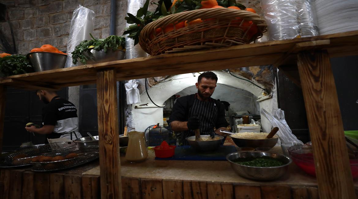 مواطنون وباعة في أسواق البلدة القديمة بمدينة نابلس خلال ثالث أيام شهر رمضان .