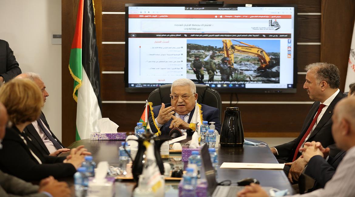 رام الله - الرئيس محمود عباس، يفتتح المقر المؤقت لوكالة الانباء والمعلومات الفلسطينية "وفا"