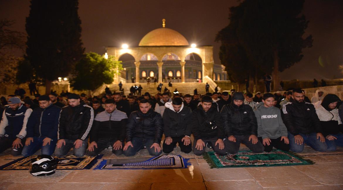 مواطنون يؤدون صلاتي العشاء والتراويح في المسجد الاقصى المبارك