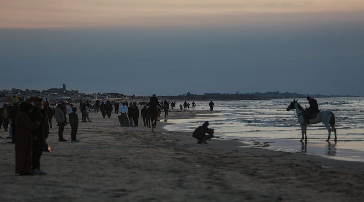 شاطئ البحر هو الملاذ الوحيد للنازحين للهروب من مشاهد الدمار