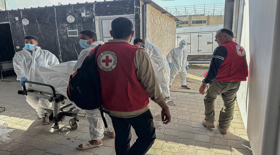 الصليب الأحمر ينقل جثامين شهداء كان يحتجزها الاحتلال الإسرائيلي إلى مستشفى ناصر في خان يونس جنوب غزة