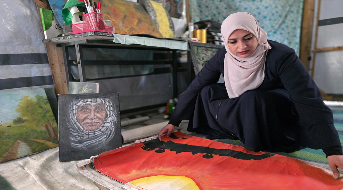 النازح خالد الزعانين يعيش مع أسرته في ظروف غير إنسانية في خيمة داخل مقبرة بدير البلح وسط قطاع غزة، بعد نزوحه من بيت حانون