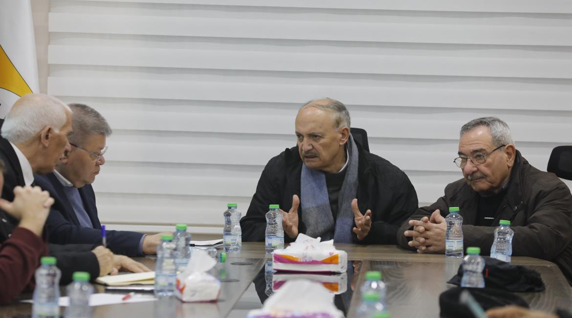 رئيس اتحاد النقابات العالمي بامبيس كريتسيس (WFTU) خلال زيارته مع وفد مرافق له لمقر منظمة التحرير