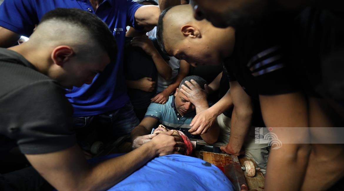 نابلس - وداع الشهيد علاء زغل (21 عاما)، في مستشفى رفيديا الحكومي بمدينة نابلس