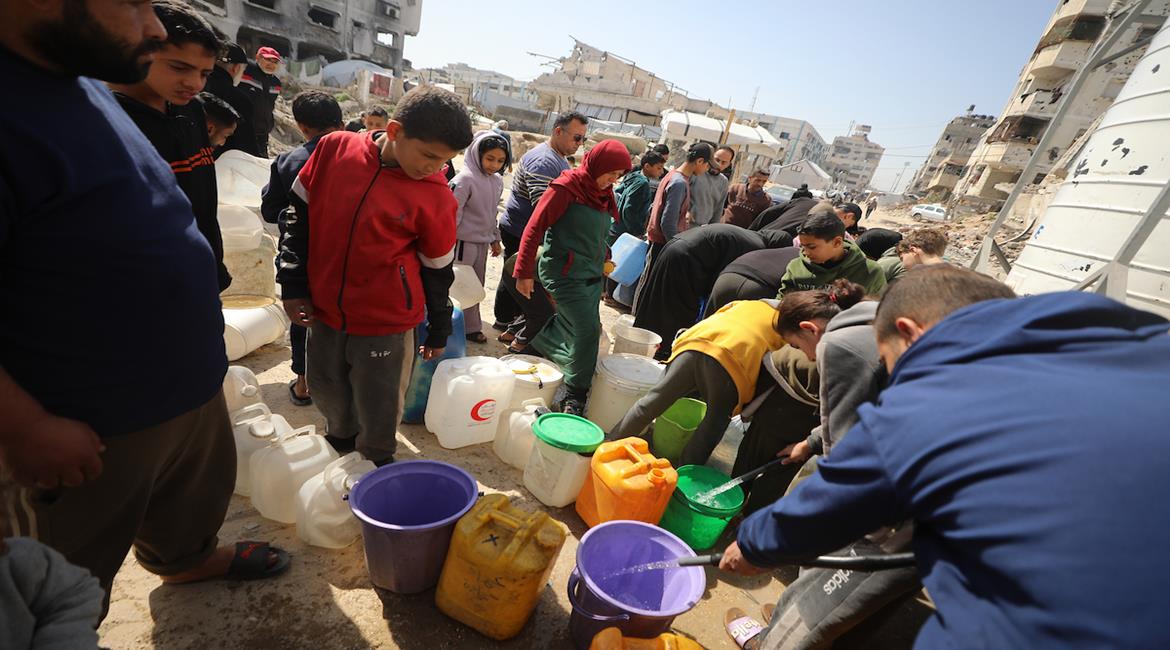 معاناة كبيرة يتكبدها النازحون لتأمين مياه صالحة للشرب وسد جزء من احتياجاتهم اليومية في مدينة غزة