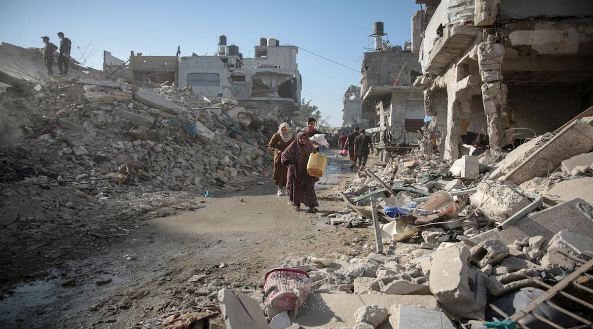 مواطنون يتفقدون منازلهم وأحيائهم المدمرة في منطقة تل الهوا جنوب مدينة غزة