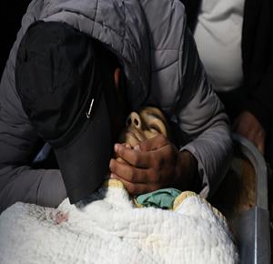 نابلس - وداع الشهيد مهدي حشاش من مخيم بلاطة في مستشفى رفيديا.