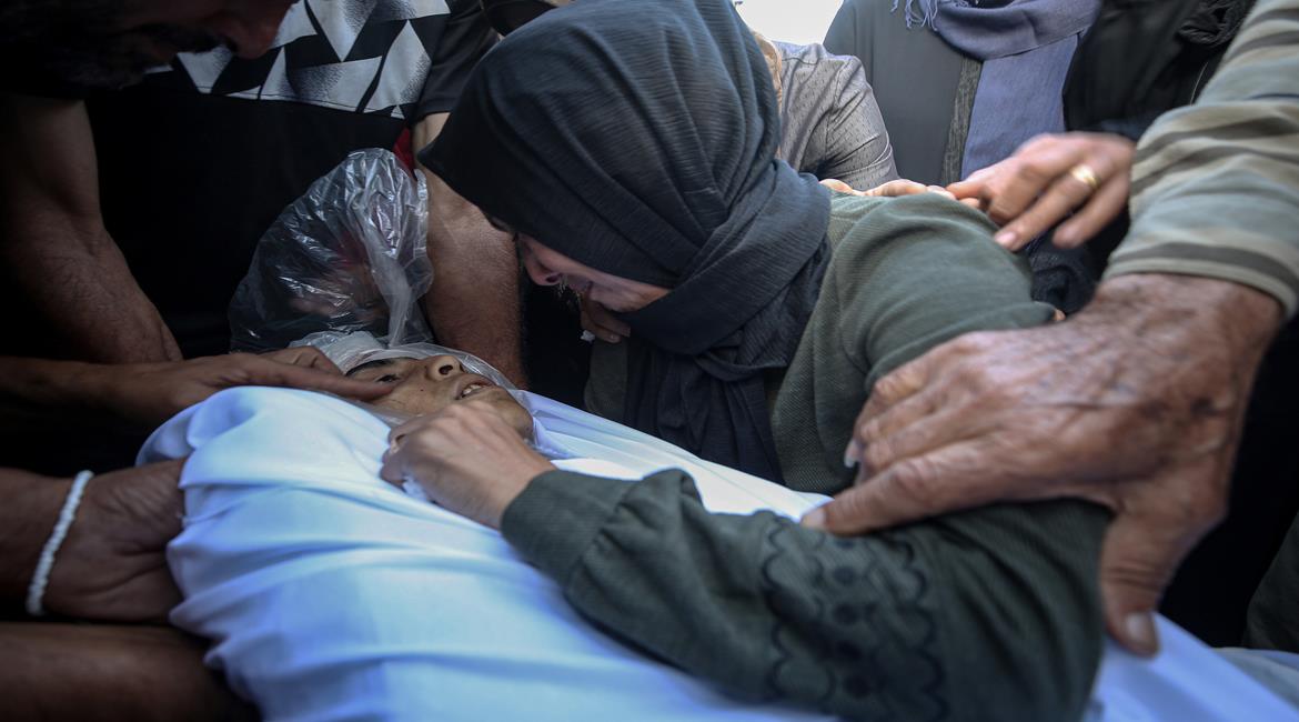وداع وتشييع شهداء القصف الإسرائيلي في مستشفى الأقصى بدير البلح وسط قطاع غزة