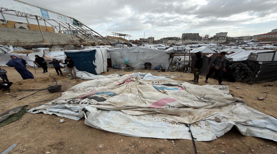 تضرر خيام النازحين بفعل المنخفض الجوي في خان يونس جنوب قطاع غزة