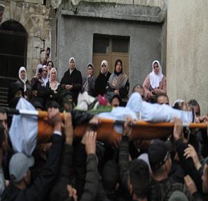 جنين - تشييع جثماني الشهيدين امجد خليلية ( 21 عام ) والشهيد عز الدين حمامرة (22 عام ) لمثواهم الاخير في بلدة جبع قرب جنين بعد استشهادهم برصاص قوات خاصة اسرائيلية صباح اليوم