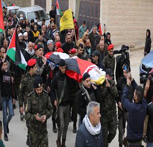 الخليل - تشييع جثمان الشهيد الشاب هارون أبو عرام، في بلدة يطا
