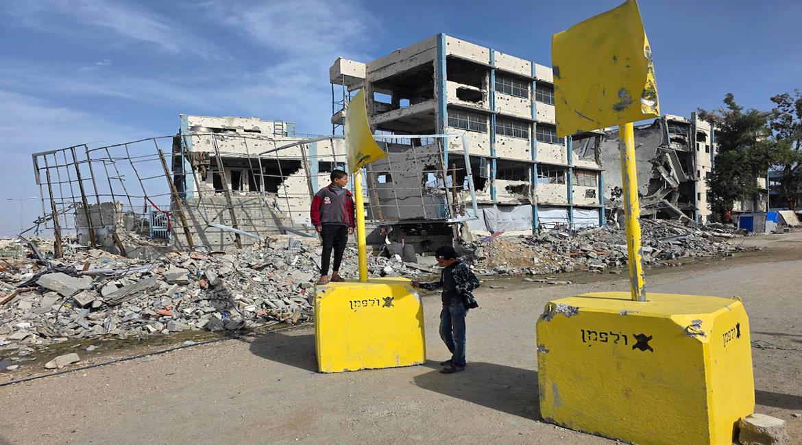 عائلات نازحة تقيم داخل مدرسة "مَلَك" التابعة لوكالة الأونروا في بني سهيلا شرق خان يونس، تجد نفسها داخل المناطق المصنّفة "صفراء" بشكل مفاجئ بعد أن حرّك جيش الاحتلال الإسرائيلي الكتل الإسمنتية الصفراء