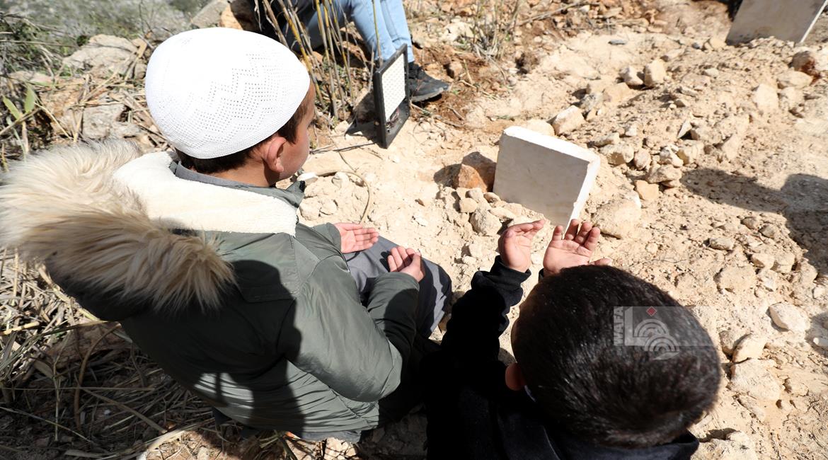نابلس - طفلا الشهيد سامح الاقطش بالقرب من قبره في قرية زعترة جنوب نابلس