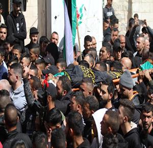 جنين - تشييع جثامين الشهداء احمد فشافشة (22 عاما) ونايف ملايشة (25 عاما) وسفيان فاخوري (30 عاما) لمثواهم الاخير في بلدة جبع جنوب جنين