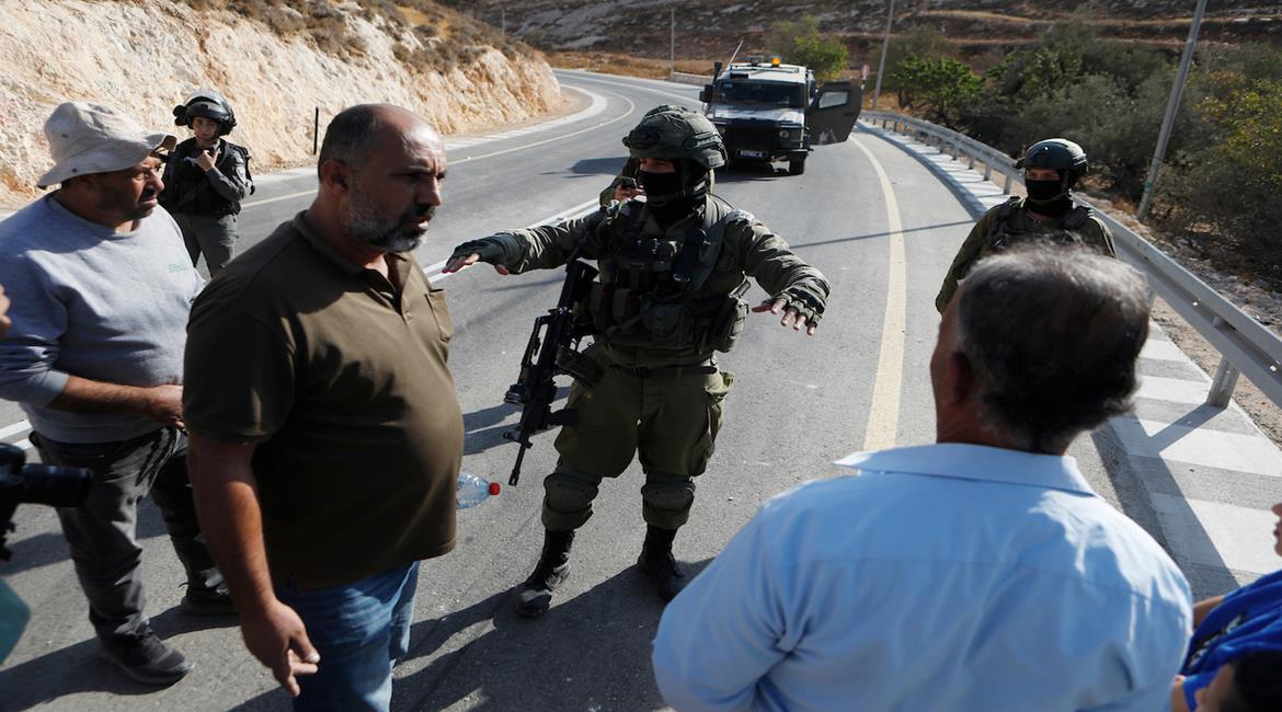جنود الاحتلال يمنعون المزارعين في بلدة سعير شرق الخليل من الوصول إلى أراضيهم وقطف ثمار الزيتون