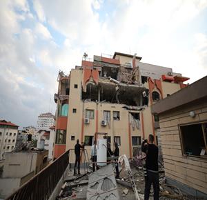 غزة - مواطنون يتفقدون آثار الدمار جراء القصف الاسرائيلي على قطاع غزة
