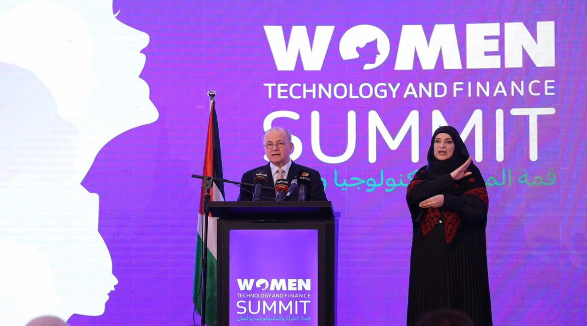 رئيس الوزراء محمد مصطفى أثناء حضوره ومشاركته في إطلاق قمة المرأة والتكنولوجيا والمال، تحت شعار: "نحو اقتصاد فلسطيني جامع"
