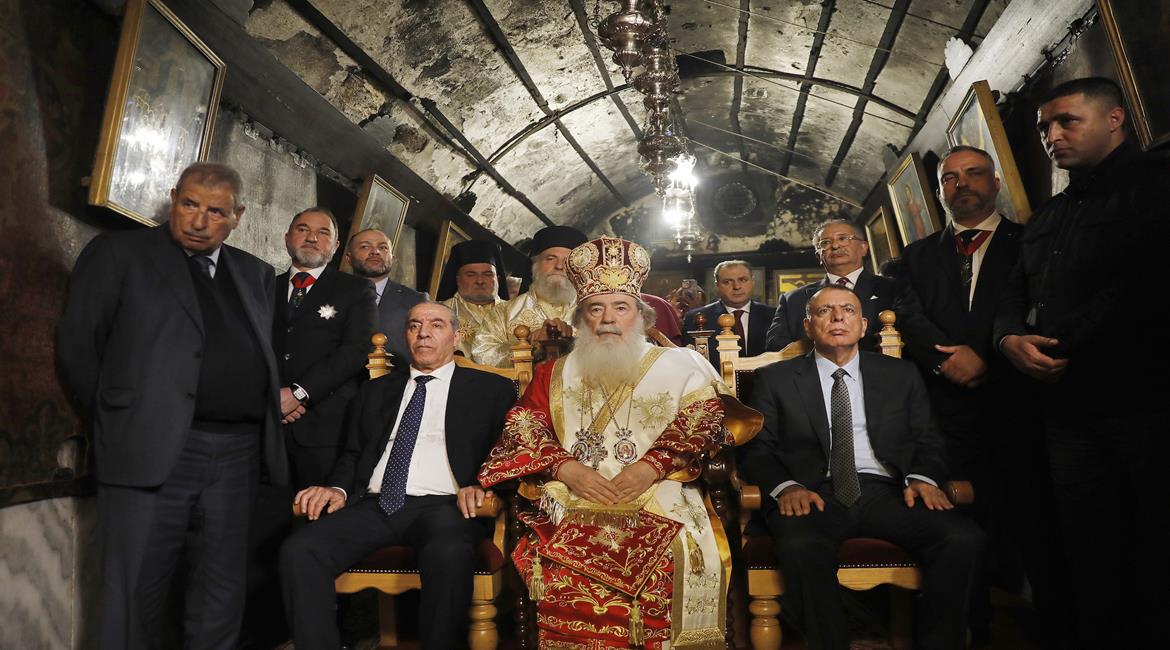 وصول موكب بطريرك الروم الأرثوذكس ثيوفيلوس الثالث إلى مدينة بيت لحم للمشاركة في قداس منتصف الليل بمناسبة عيد الميلاد المجيد حسب التقويم الشرقي