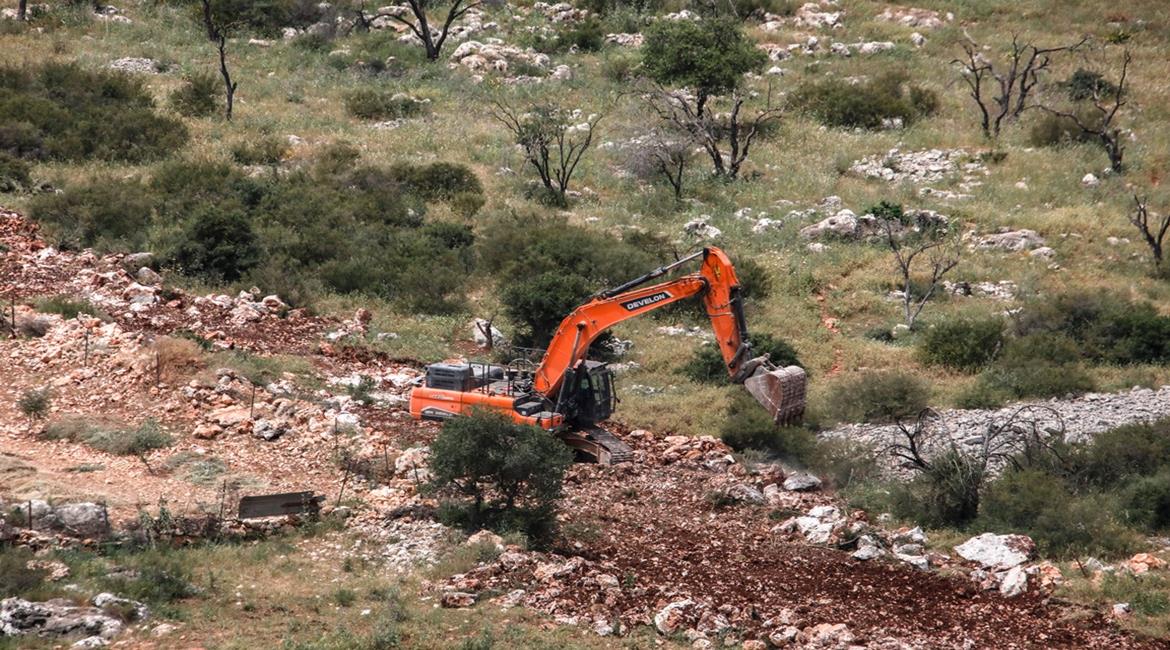 قوات الاحتلال الاسرائيلي شرعت اليوم بتجريف أراض في خربة سروج غرب اليامون غرب محافظة جنين.