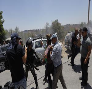 رام الله - قوات الاحتلال تقمع مسيرة ضد الاستيطان، في قرية أم صفا شمال غرب رام الله