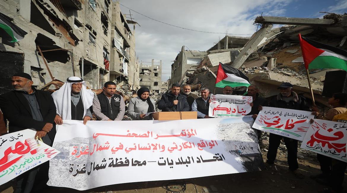 مواطنون ينظمون وقفة في جباليا شمال قطاع غزة احتجاجاً على تدهور الأوضاع الإنسانية وانهيار الخدمات الأساسية