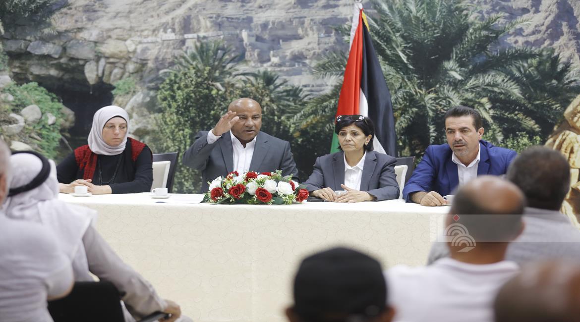 أريحا - رئيس هيئة مقاومة الجدار والاستيطان الوزير مؤيد شعبان يلتقي باصحاب المنازل المخطرة بالهدم من قبل الاحتلال في قرية الديوك التحتا، غرب مدينة أريحا