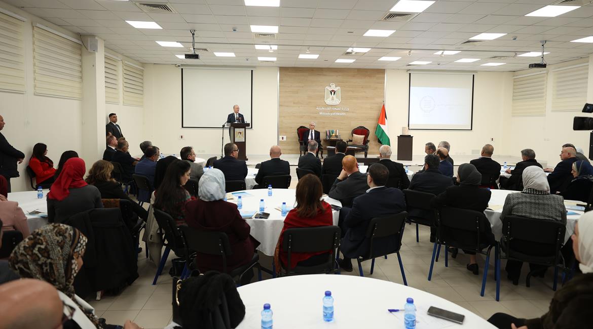 رئيس الوزراء محمد مصطفى، خلال القاء كلمته في ورشة إطلاق استراتيجيتي الحوكمة الصحية والجودة وسلامة المريض لوزارة الصحة